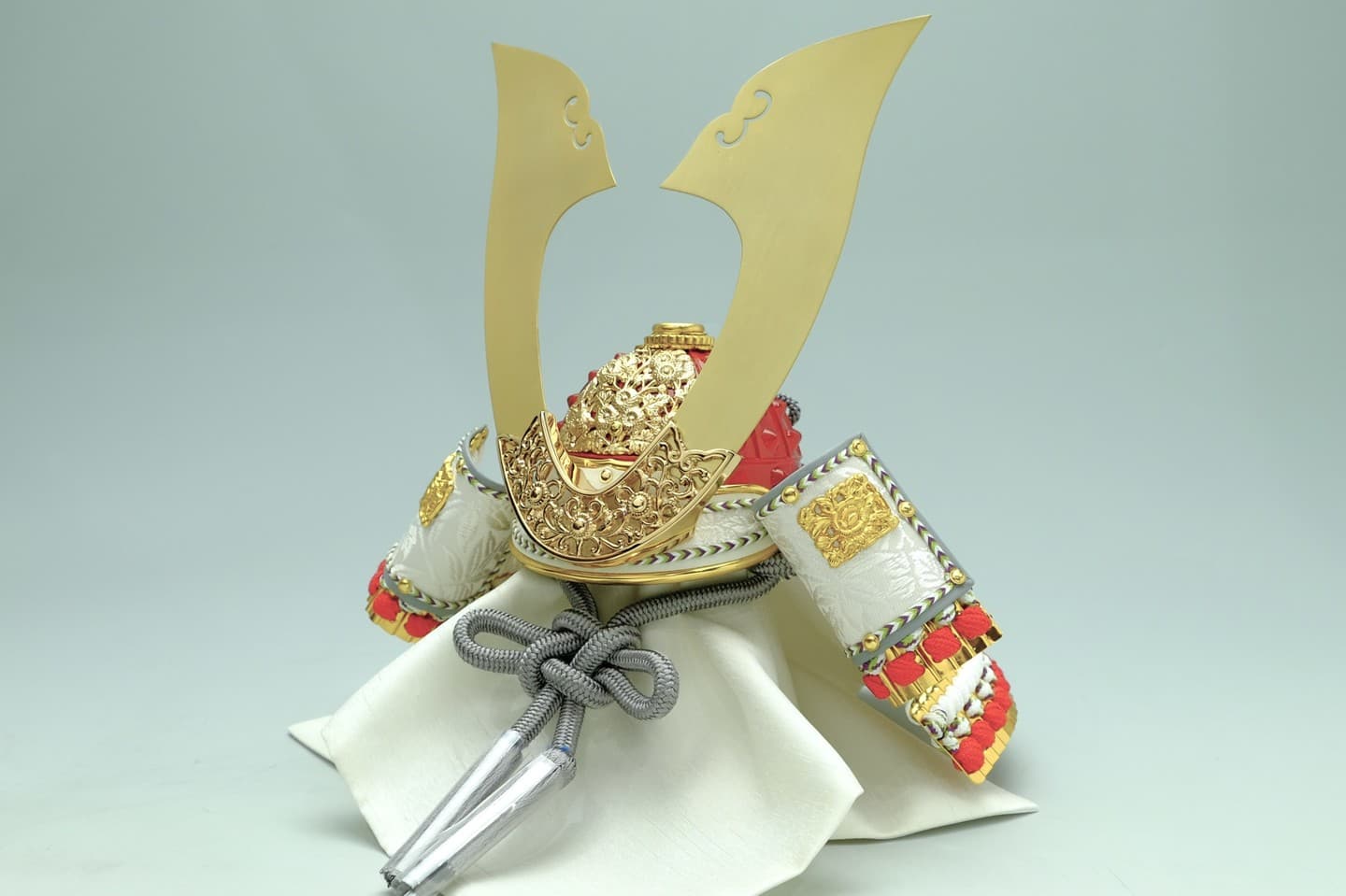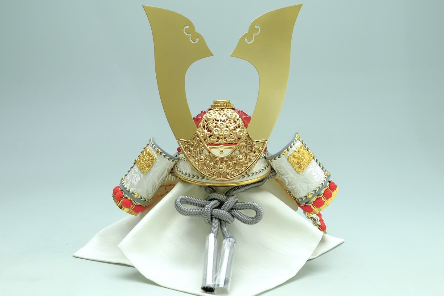 美術工芸飾り 透かし彫り白糸威星兜G.CK-26